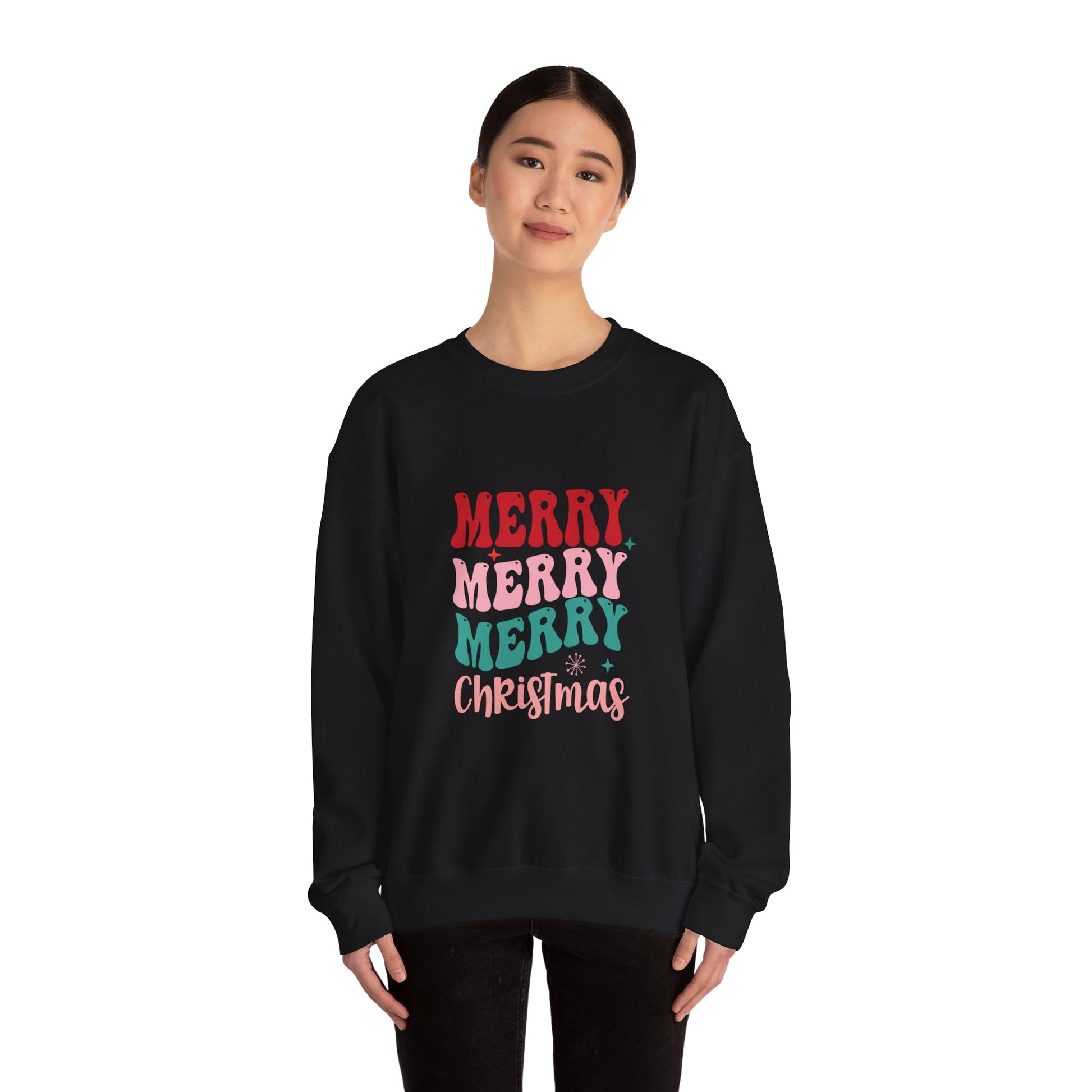 Christmas Crewneck Sweatshirt — "Merry Merry Merry" Holiday Pullover